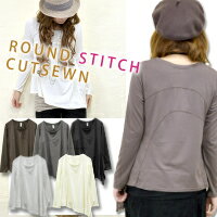 デザイン性で選ぶなら、変形アイテムは外せないっ★!ステッチ&アシメシルエットで、オシャレ度急上昇しちゃう♪♪ほんとに360度可愛い!!【and it_】ラウンドステッチ変形カットソー