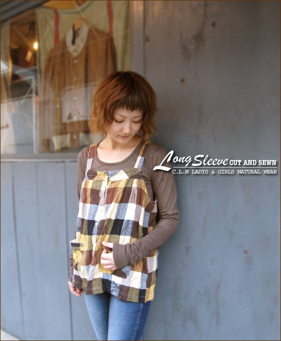 くしゅくしゅ切替袖がレイヤードスタイルに◎【C.L.N】シーエルエヌナチュラルな雰囲気が◎袖リブ切替★長袖カットソー♪