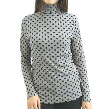 綿シフォン【ARRIVEE 元祖アリヴェ】ドット(水玉)プリント長袖ハイネック(タートルネック)カットソー 【送料無料】 10P21Dec09