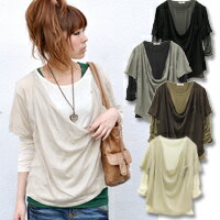 11/24(火)レア在庫少量でました!!アレンジしなくてもオシャレな重ね着に♪ドレープ感が大人可愛くて着回し力も抜群◎ラフカジュアルなスタイルにもぴったり☆梨地ドレープ重ねくしゅ7分カットソー